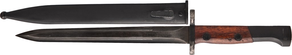 Het handvat is voorzien van houten greepplaatjes beschikt over een grendelmechanisme met spiraalveer. De pommel, die achteraan zowel een T-vormige als een TO-vormige opening kan hebben, is aan het heft gesoldeerd. De schede is gemaakt uit geblauwd plaatstaal.