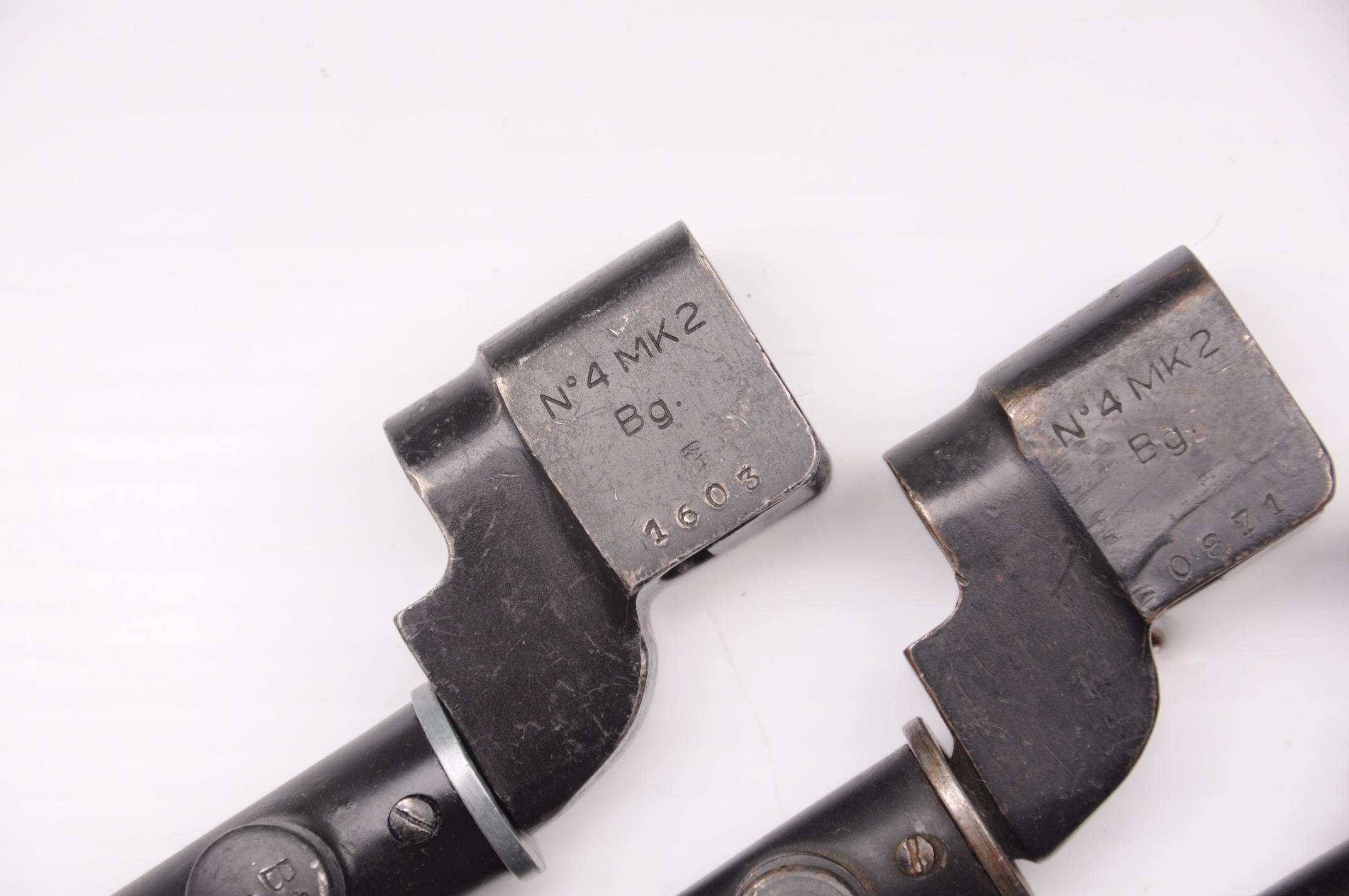 Er zijn een beperkt aantal No. 4 MK2 bajonetten met met een “Bg” stempel. Algemeen wordt aangenomen dat deze in België gemaakt werden maar hiervoor zijn er nog geen bewijzen gevonden. De schedes van deze “Bg” gemarkeerde bajonetten hebben afnamestempels die Belgisch lijken te zijn.