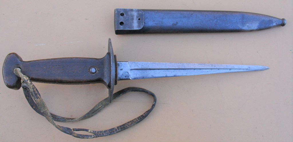 Voor de eerste dolken werd het mondstuk van de model 1889 bajonet schede, met bladveren, herbruikt. Dit werd versmald zodat het in het schedelichaam paste.