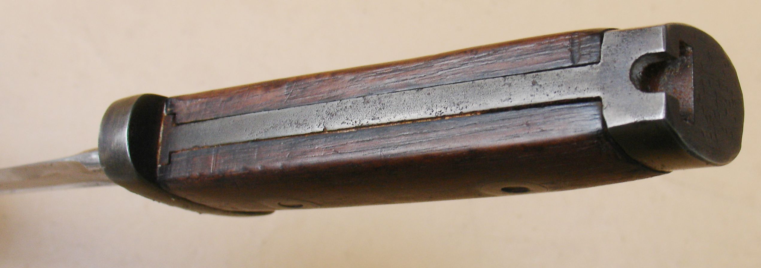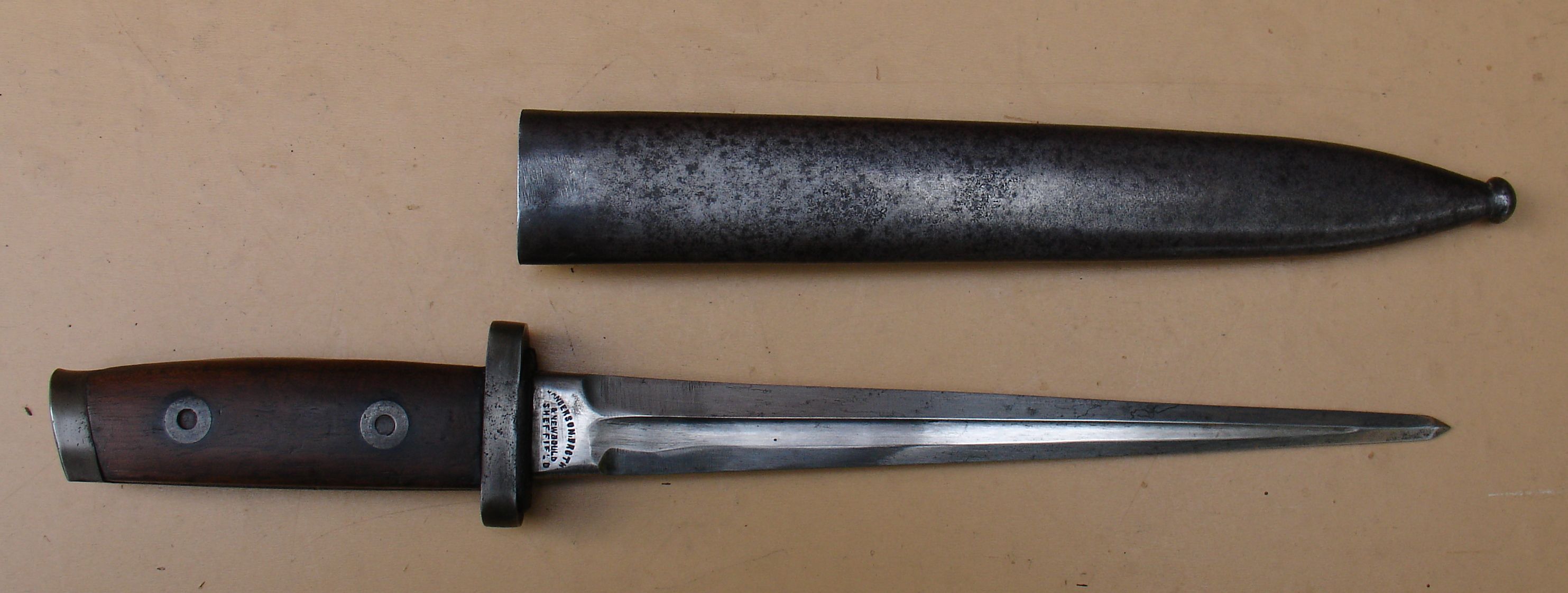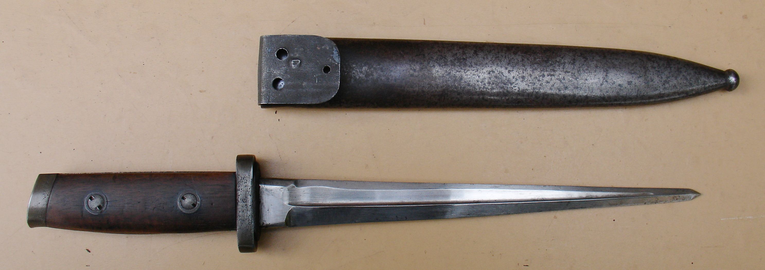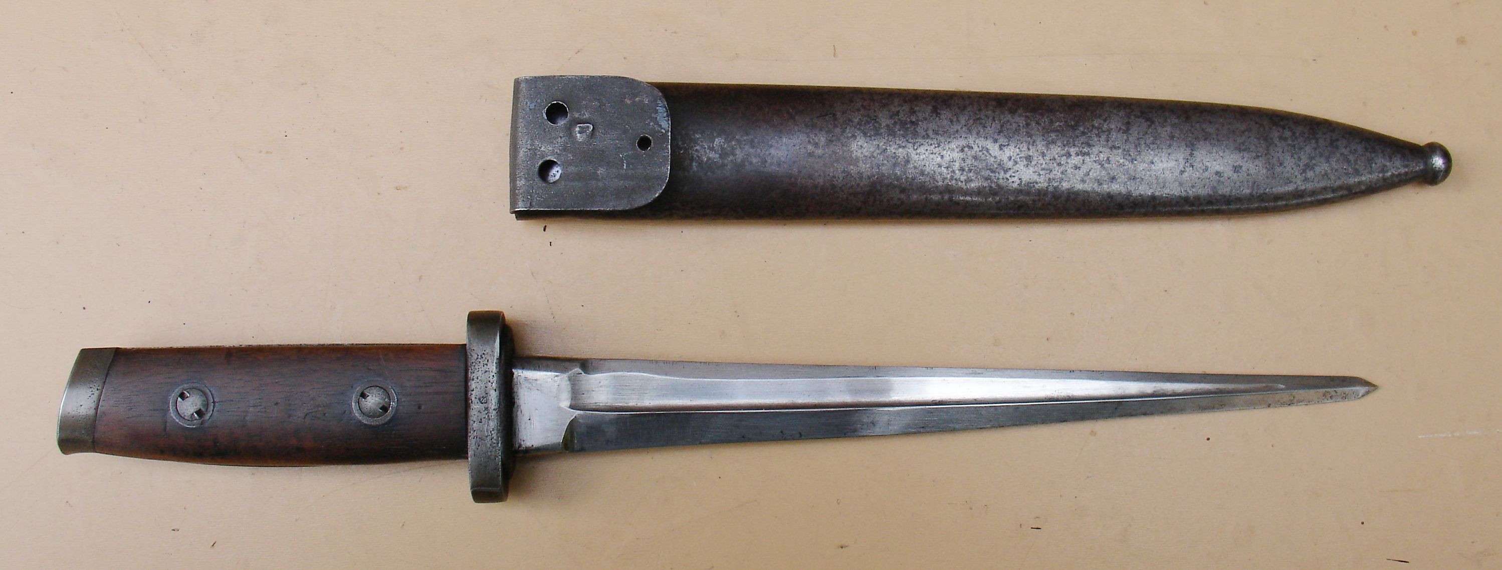 Het is niet bekend welk soort schede er bij deze dolk hoorde. Mogelijk dezelfde als voor de dolk met een lemmet van een model 1889 bajonet.