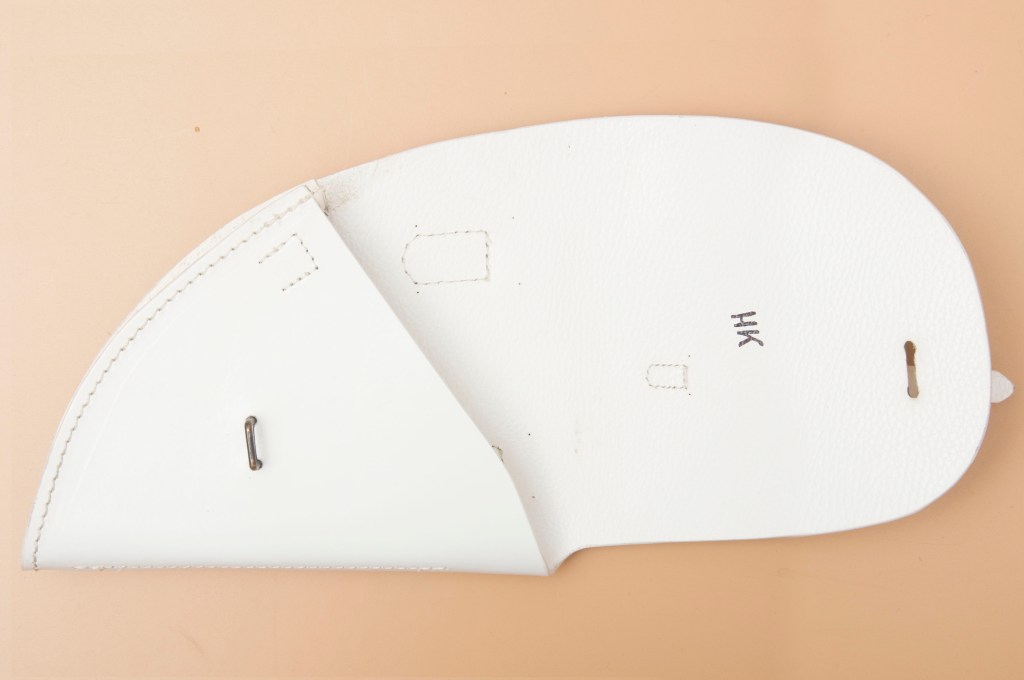 Wit kunststof, hard boxmodel, 170mm breed en 215mm hoog, dubbele 25mm brede riemlussen aan de achterkant, sluiting van boven naar beneden doorheen een stalen beugel die door twee verschillende opening in de flap past, 1 vak voor reservelader aan de binnenkant, met ruimte voor poetsstok.