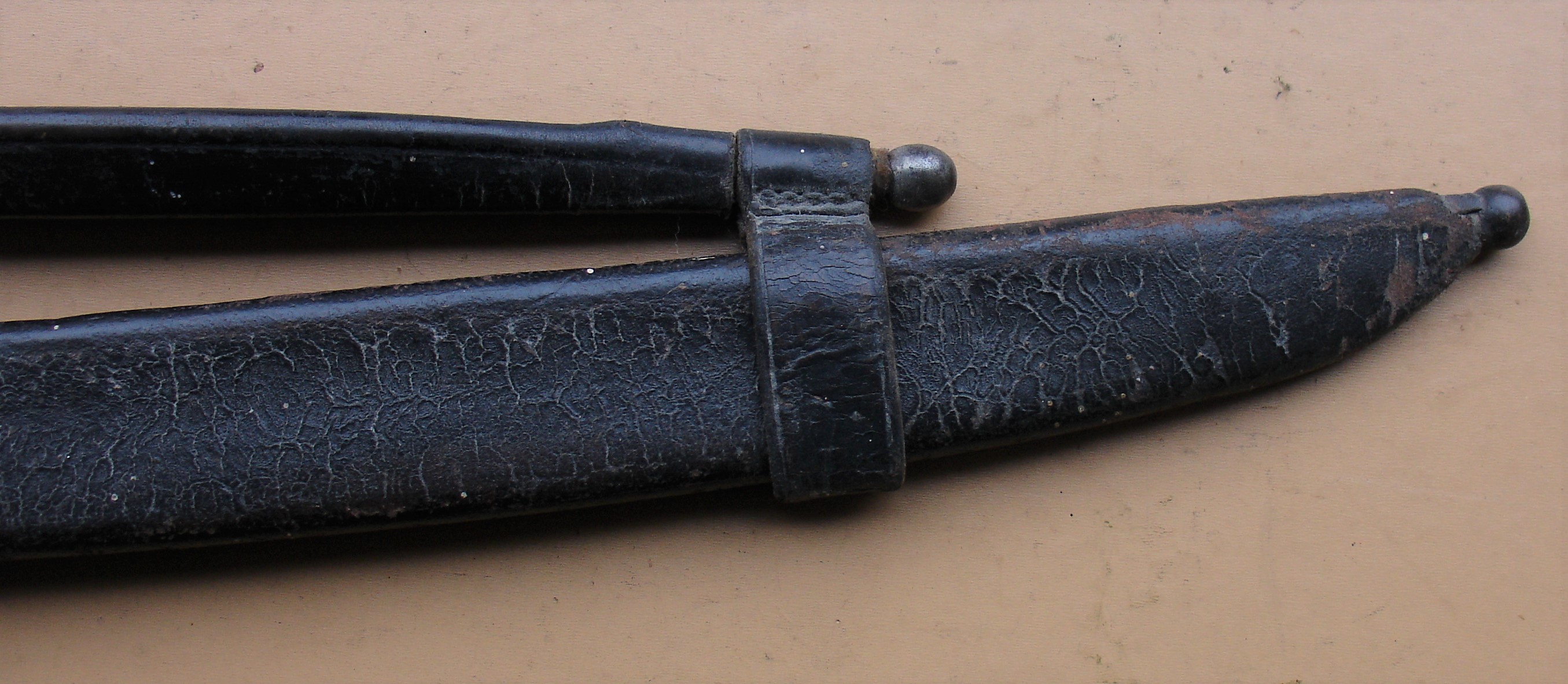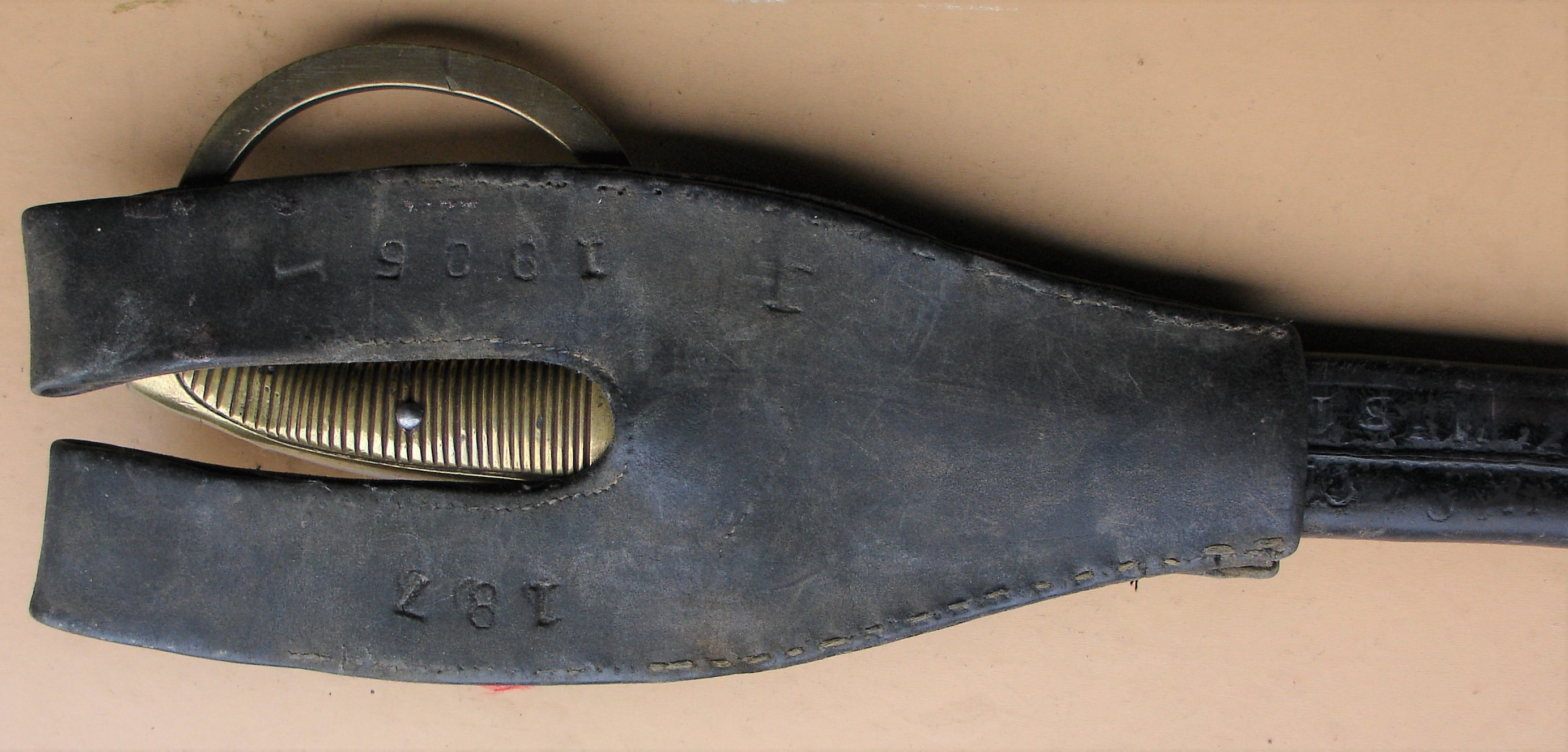 De eerste modellen schede hadden een schedemond met riempje in buffelleer. Bij de infanterie, genie en administratie waren deze wit, bij de veldartillerie zwart.