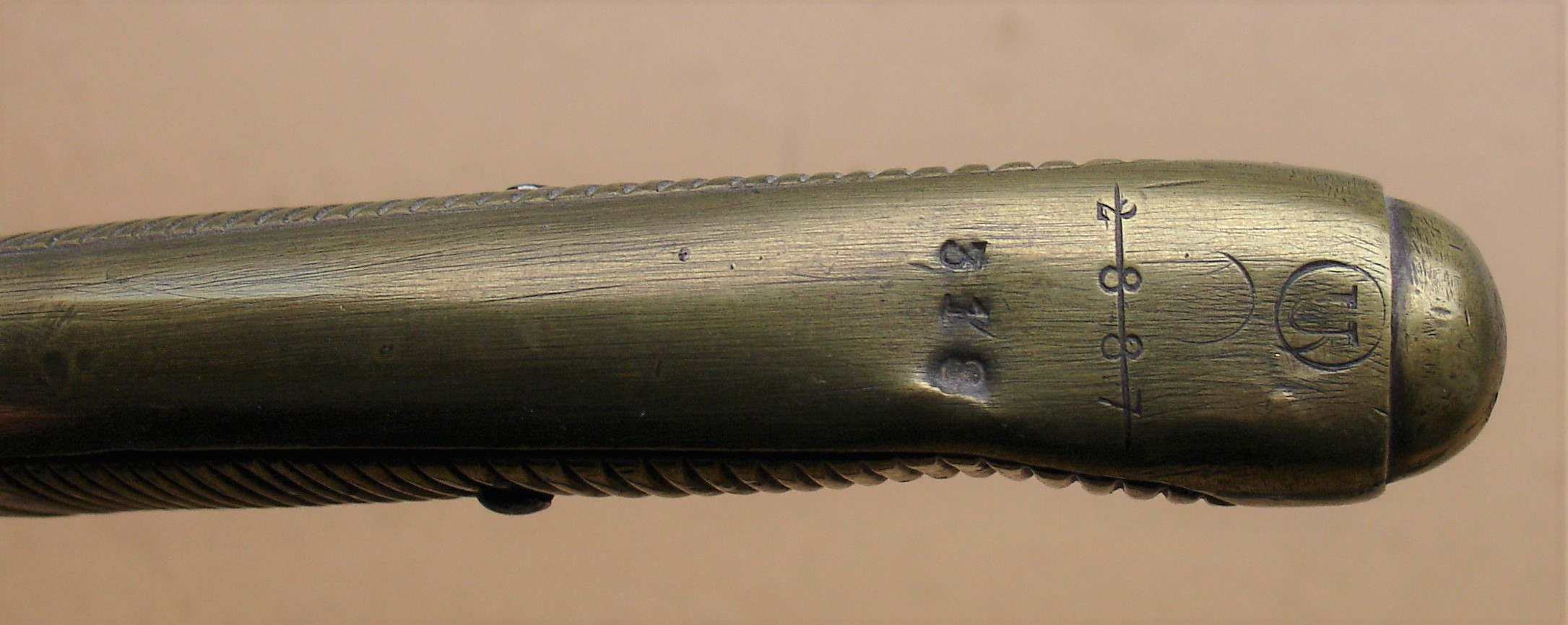 Het heft bestond uit een enkel stuk gegoten messing met 36 ringen. De garde had een enkele beugel die vooraan eindigde in een naar voren gebogen pareerstang met halfronde knop.