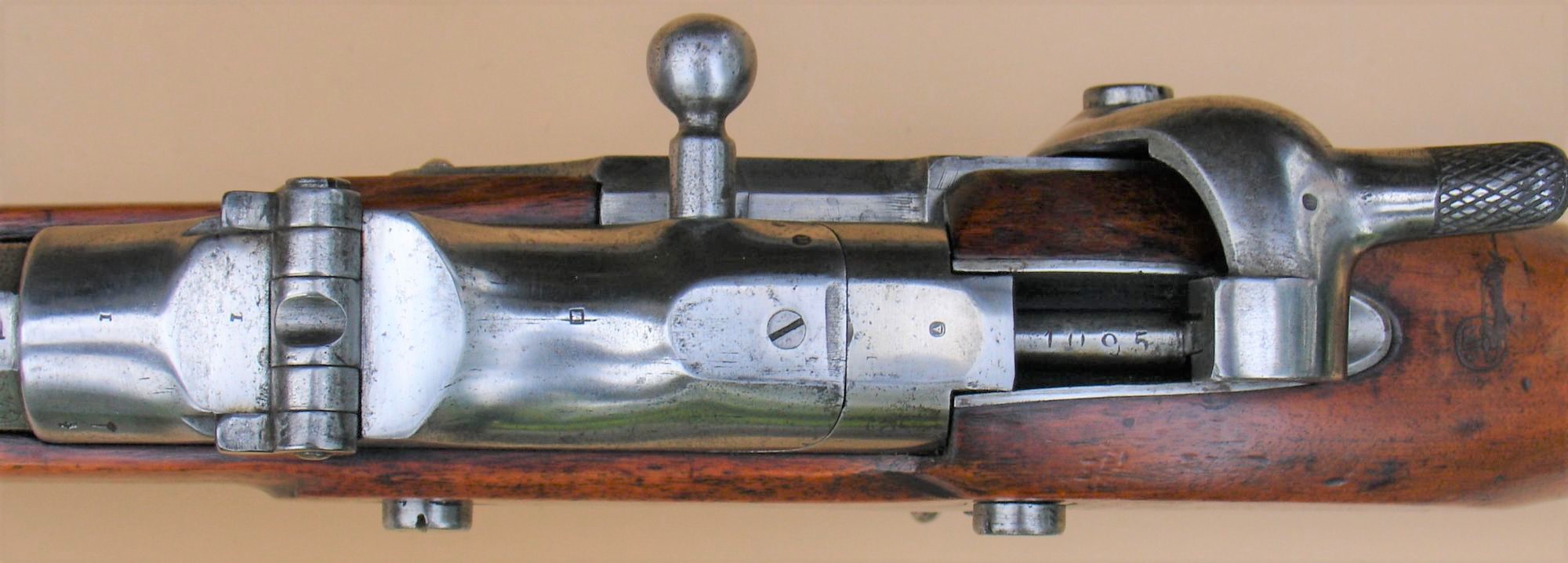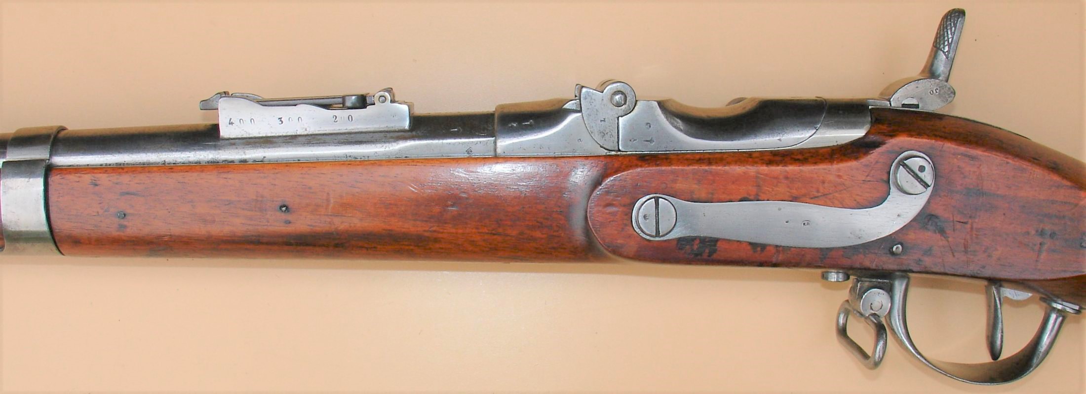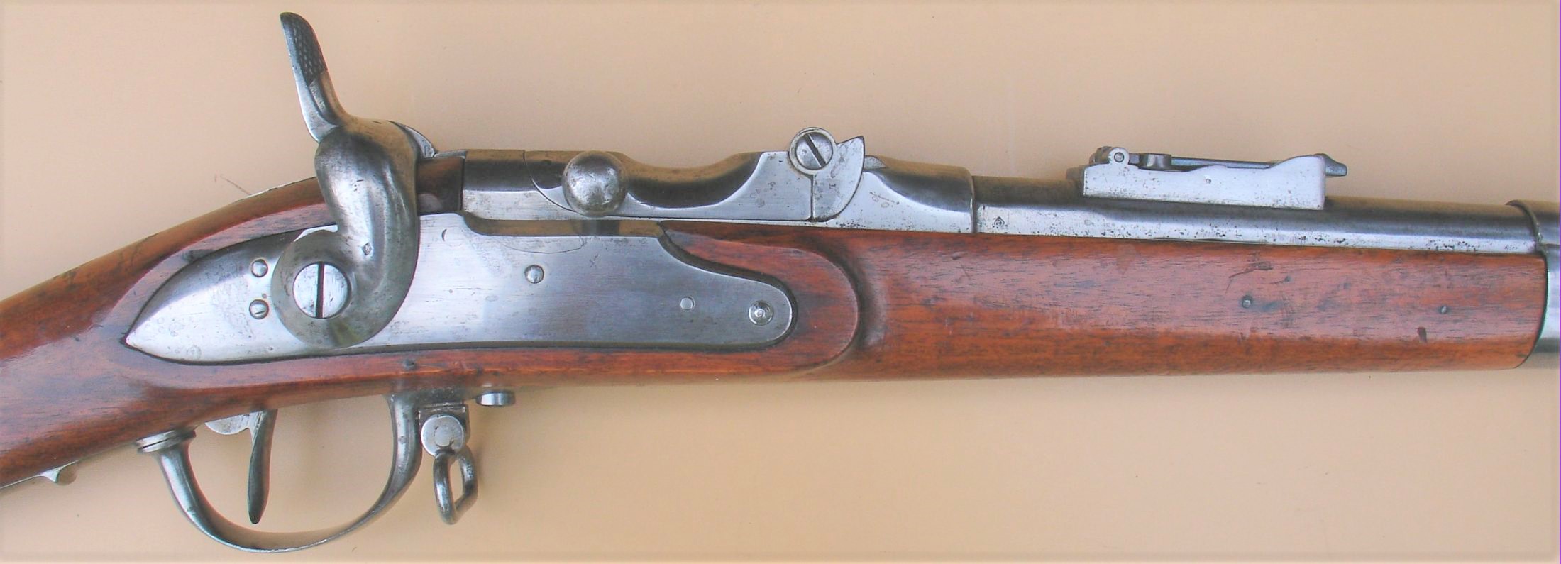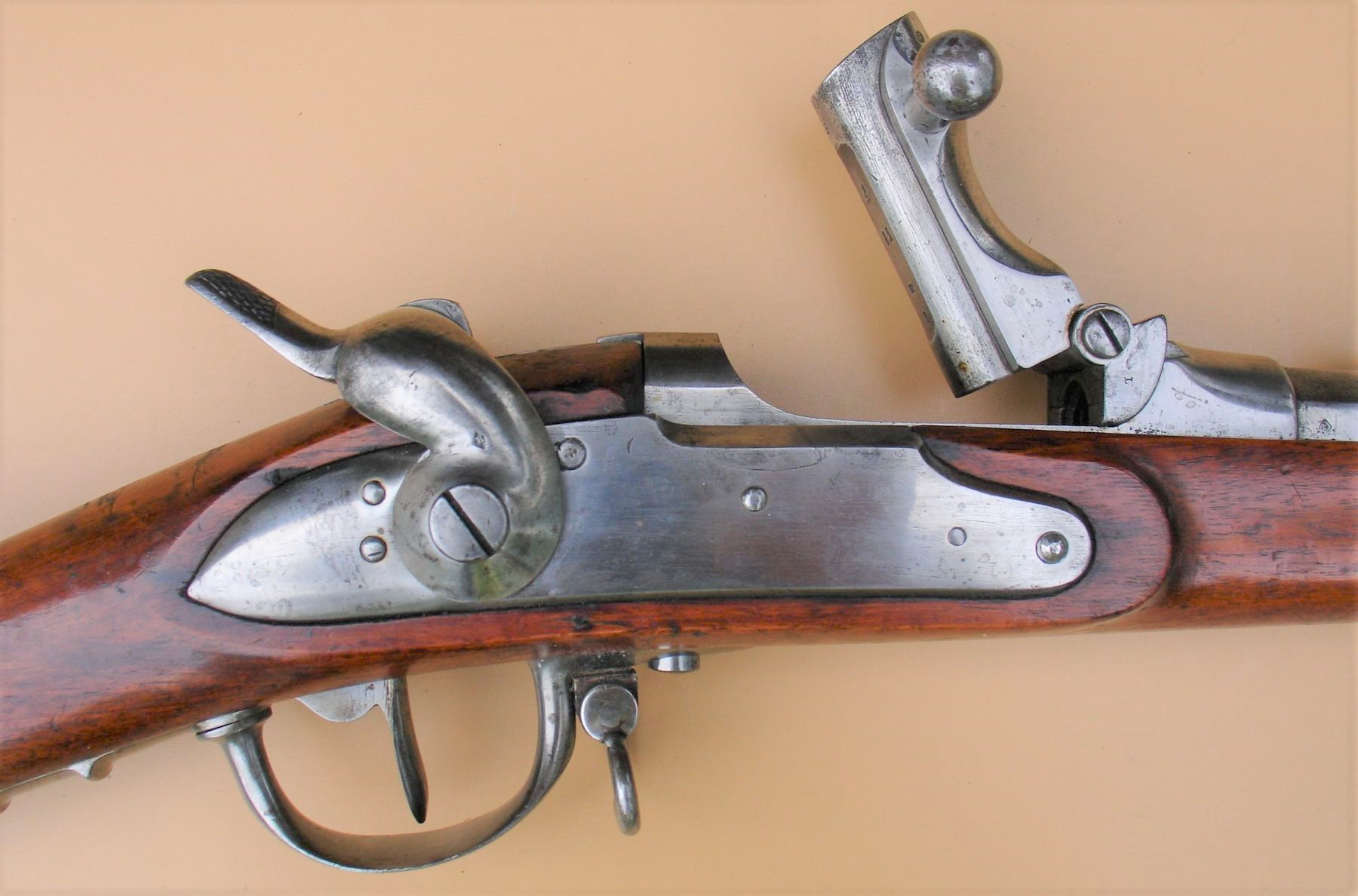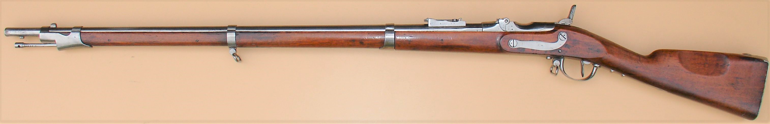 Het donor wapen, in dit geval een model 1777 infanteriegeweer met vuursteenslot werd eerder al omgebouwd naar een “model 1777 infanteriegeweer, gewijzigd” met percussiesysteem. Later werd dit nogmaals gemoderniseerd door het aanbrengen van trekken in de loop waardoor het een “model 1777 infanteriegeweer, gewijzigd en getrokken werd”. En bij deze laatste grote ombouw werd de loop vervangen en voorzien van het Albini-Braendlin systeem met roterend blok. De onsteking gebeurde door middel van een slag van de hamer op de slagpin. De slagpin zat centraal, in de as van de loop, in het roterende grendelblok.