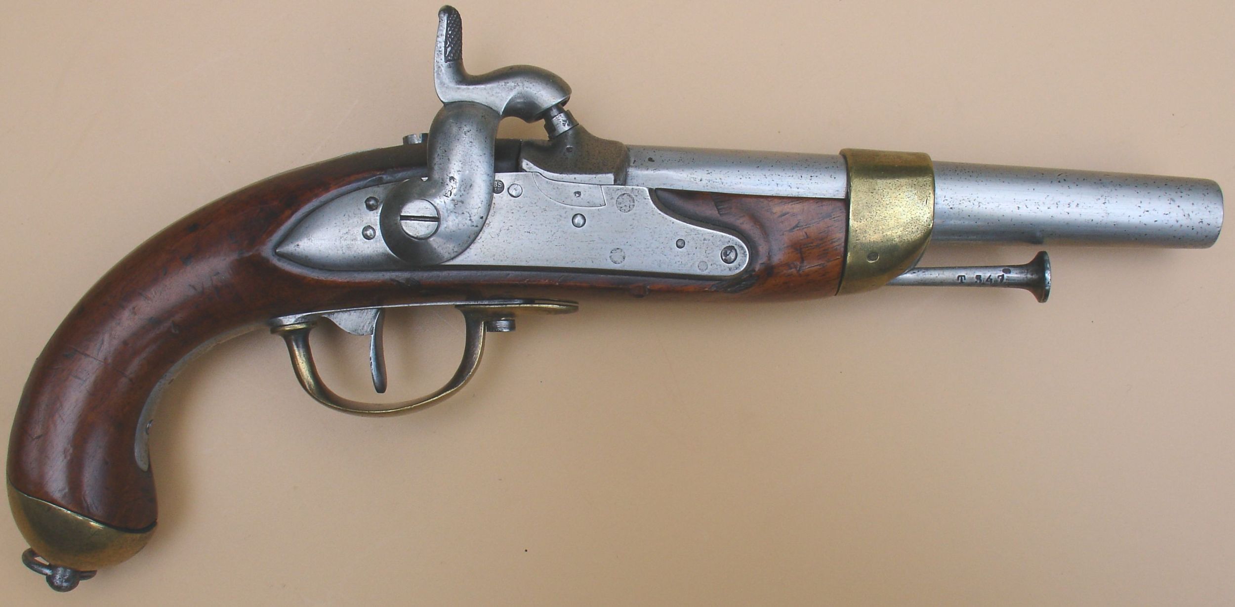 Vanaf 1841 werd het model 1816/22 pistool van de zware cavalerie aangepast door de ombouw naar percussie. Hierbij werd de haan met vuursteenklem vervangen door een hamer. De kruitpan werd verwijderd en een schoorsteen toegevoegd.