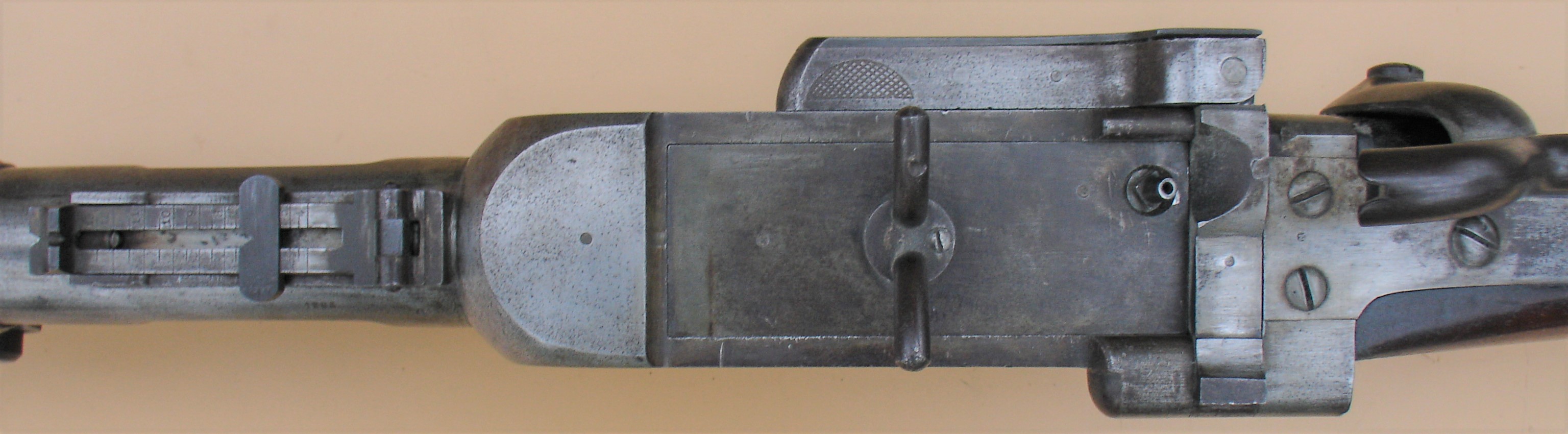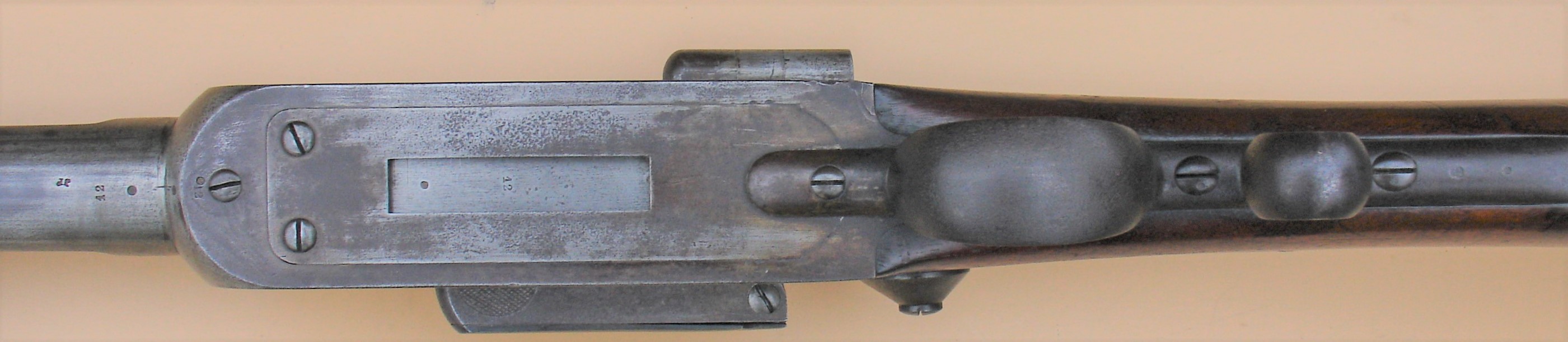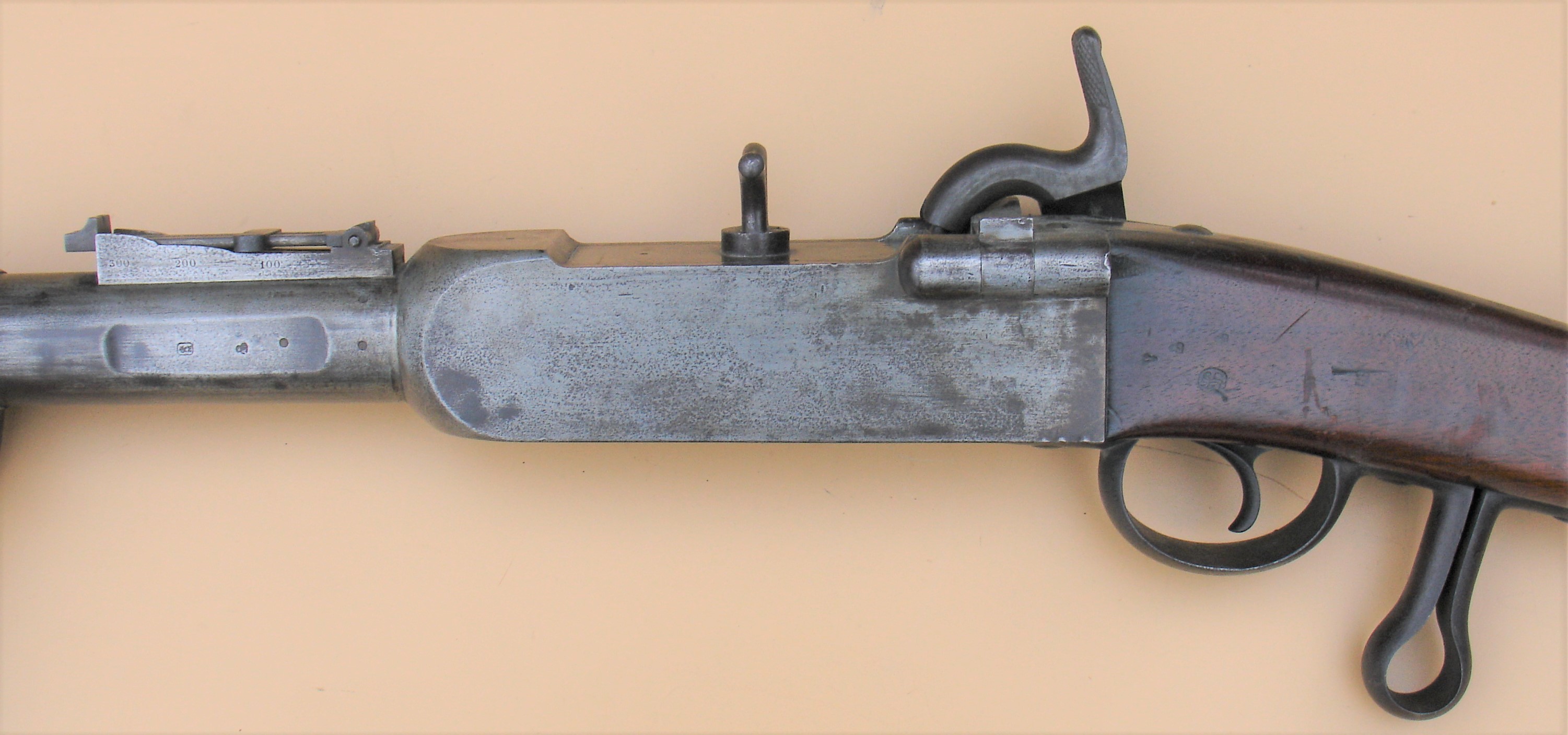 Net achter de loop zat een beweegbaar sluitstuk met scharnier. Door middel van het vleugelvormige handvat kon dit geopend worden om de patroon in de kamer te brengen. Een systeem met veer zorgde voor een vergrendeling van het mechanisme.