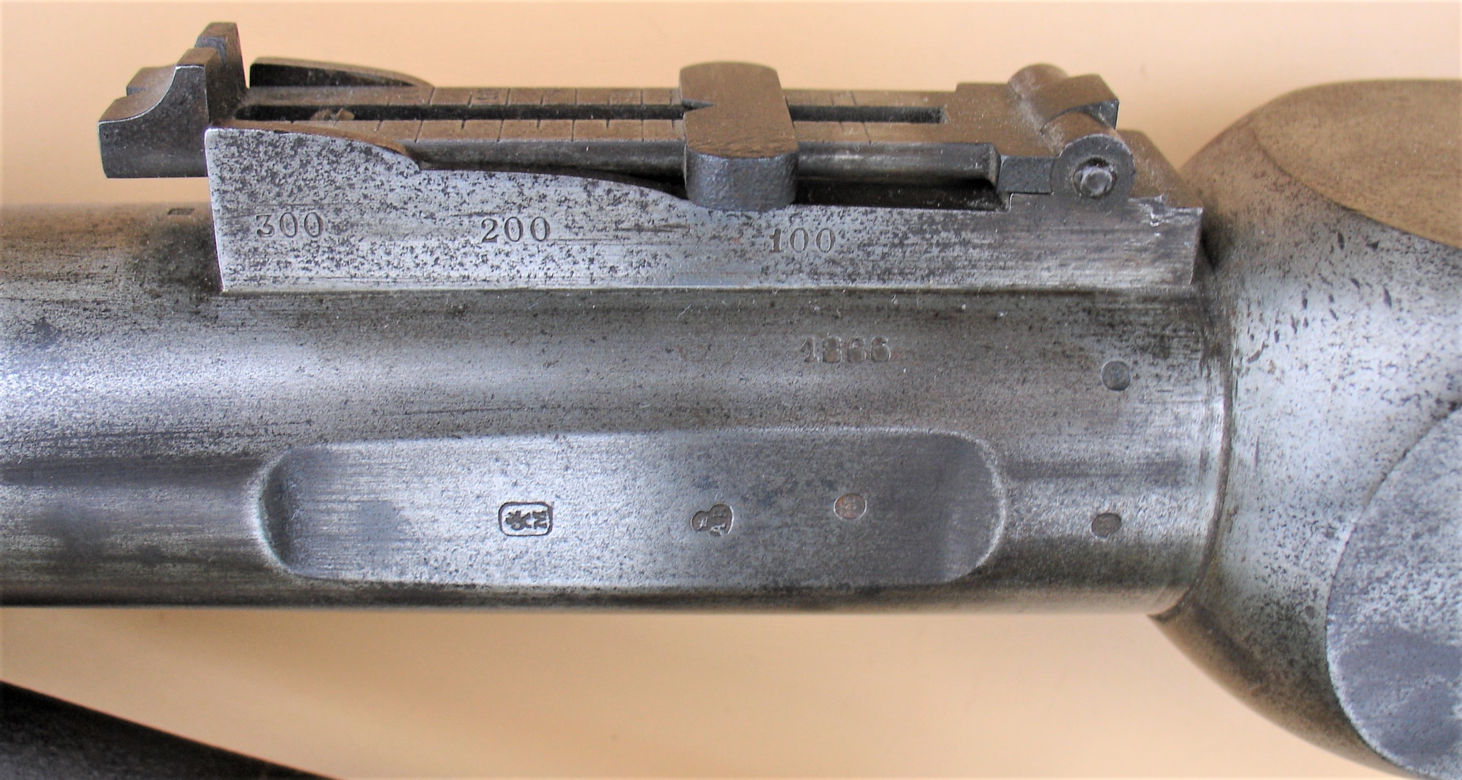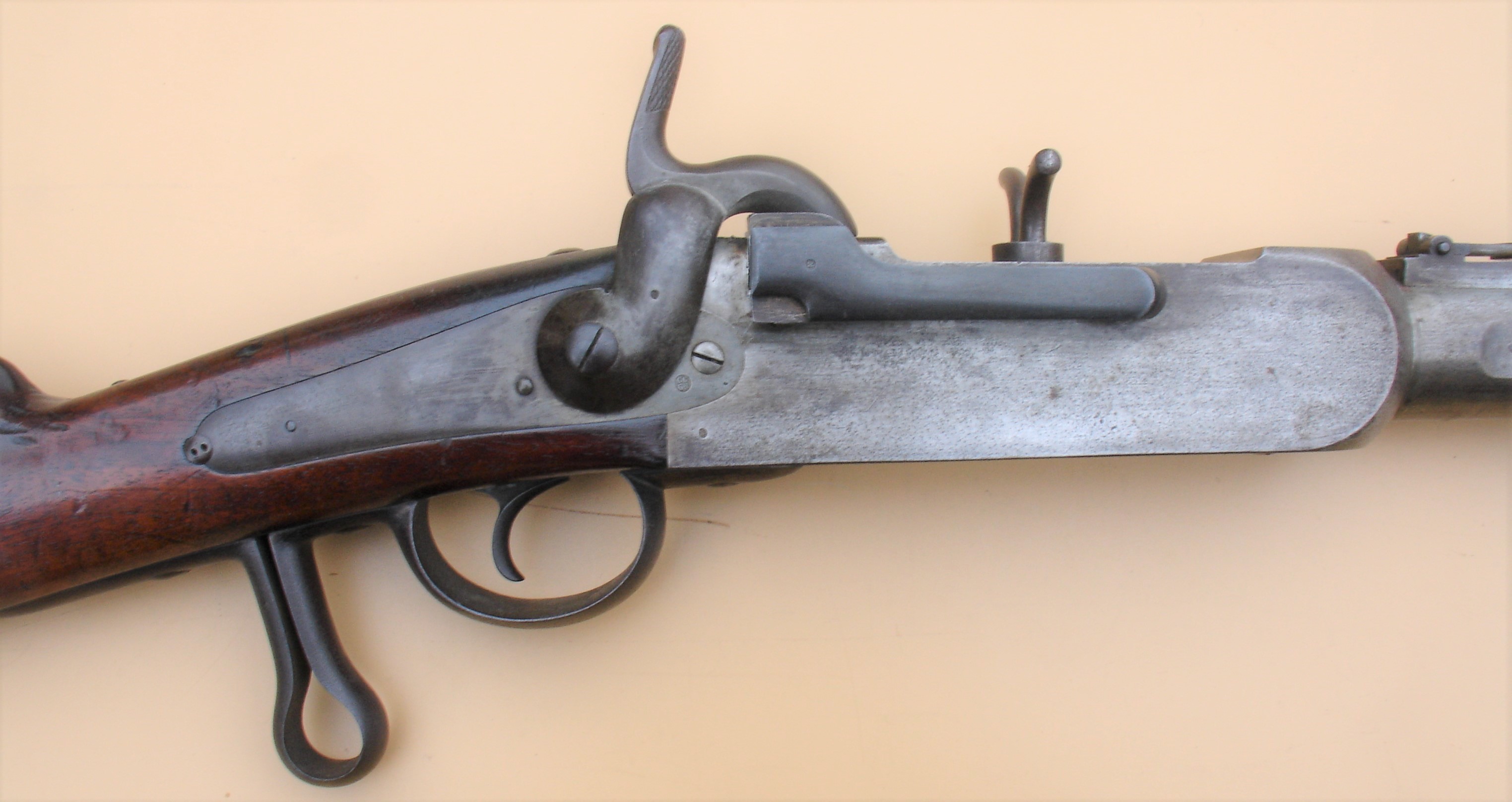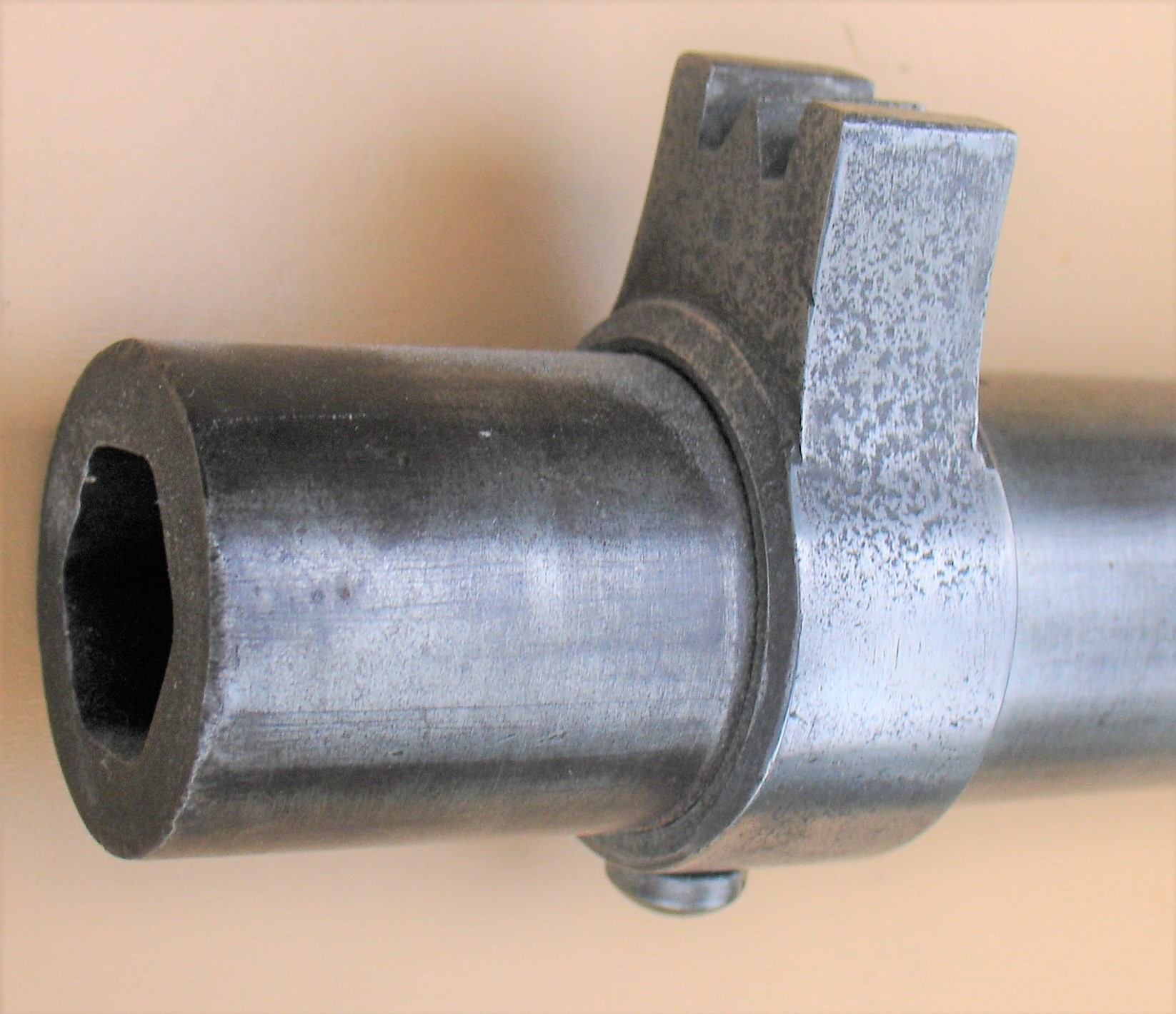 Net achter de loop zat een beweegbaar sluitstuk met scharnier. Door middel van het vleugelvormige handvat kon dit geopend worden om de patroon in de kamer te brengen. Een systeem met veer zorgde voor een vergrendeling van het mechanisme.