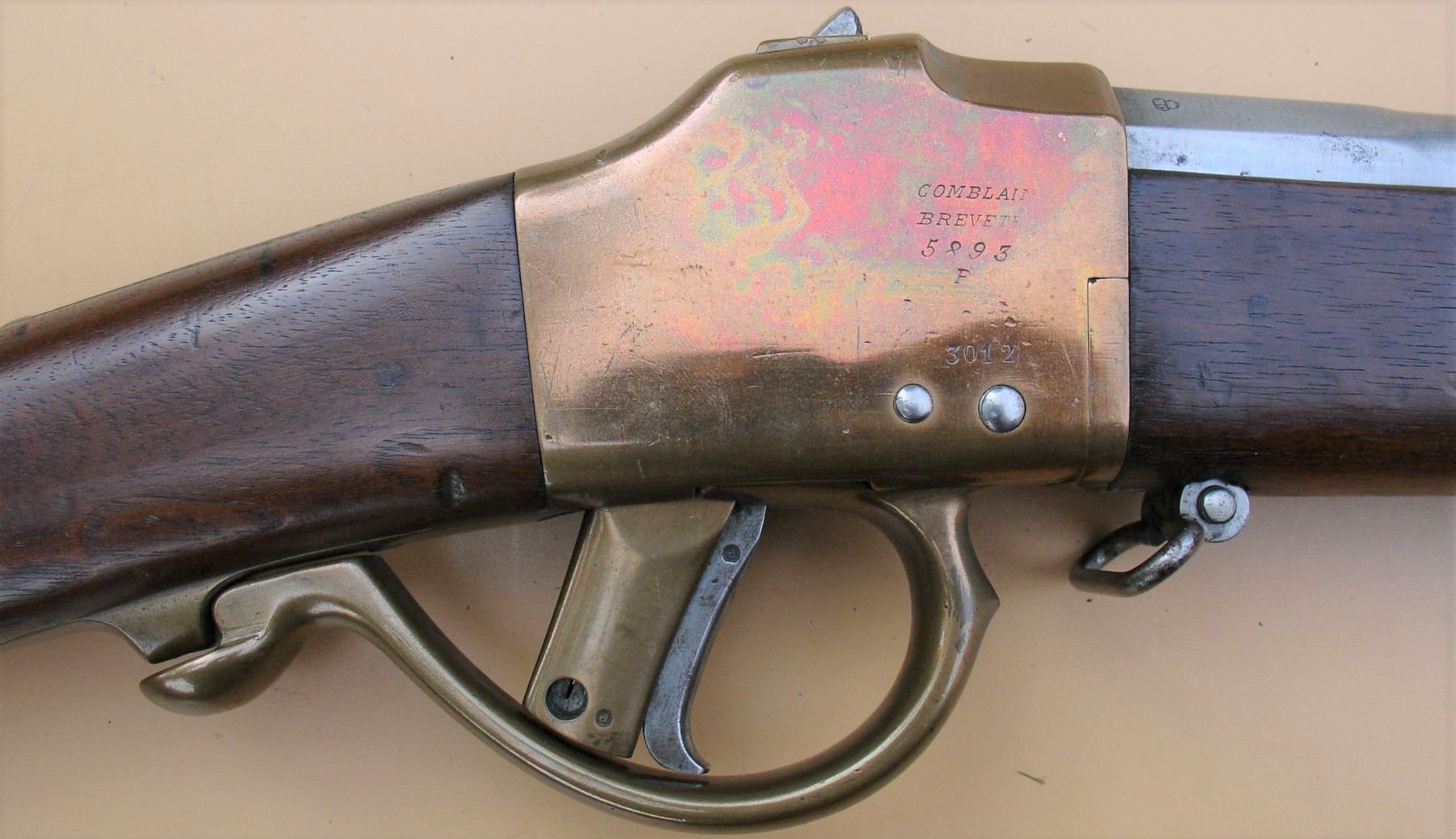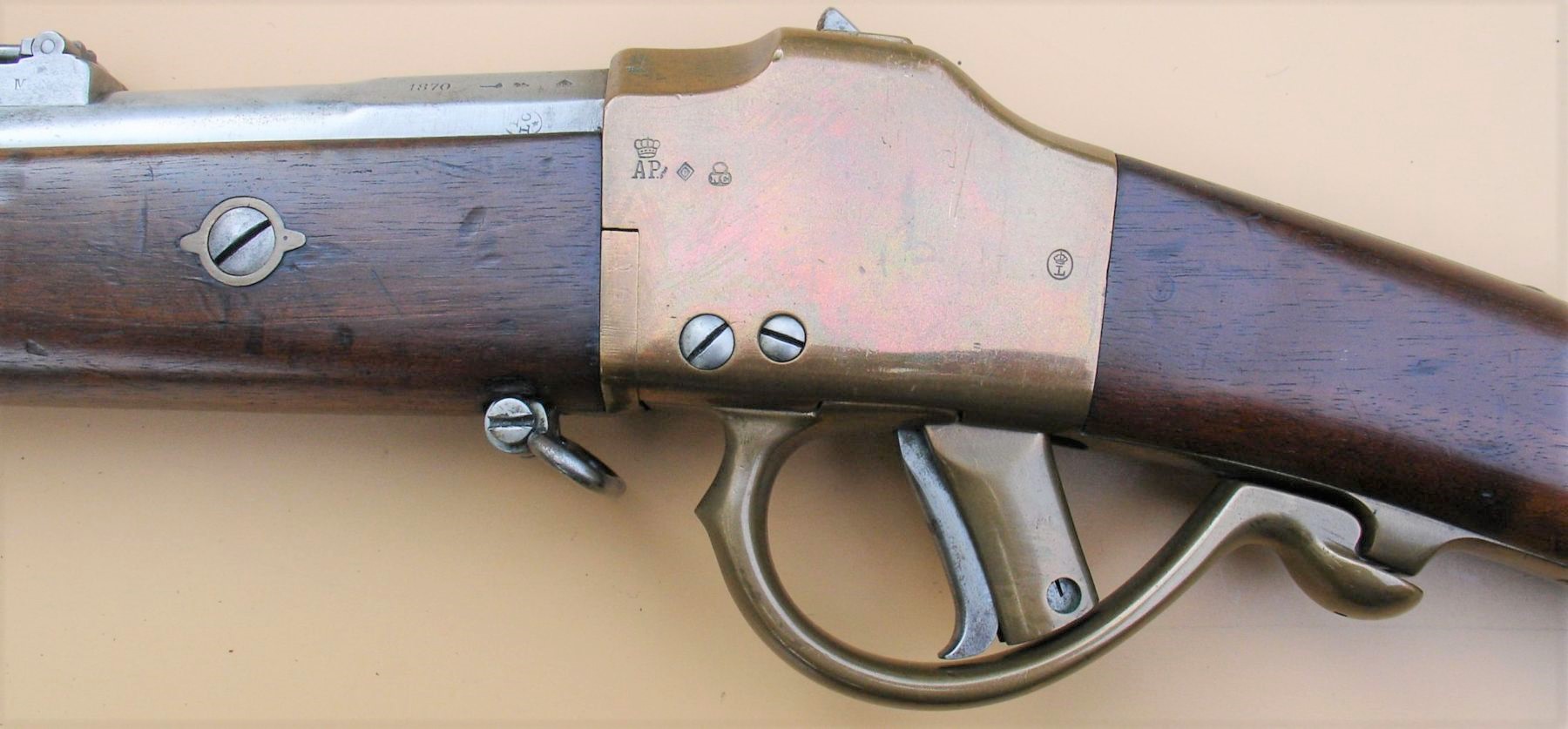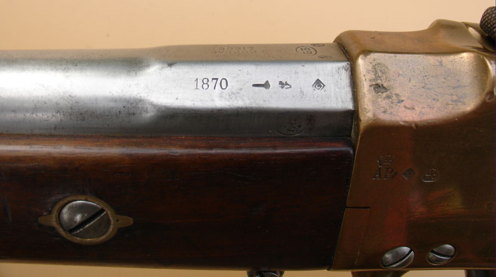 De duurzaamheid van dit materiaal bleek echter beperkt waardoor er voor latere modellen met het Comblain systeem overgeschakeld werd op staal. Bij deze karabijn hoorde de model 1870 sabelbajonet.