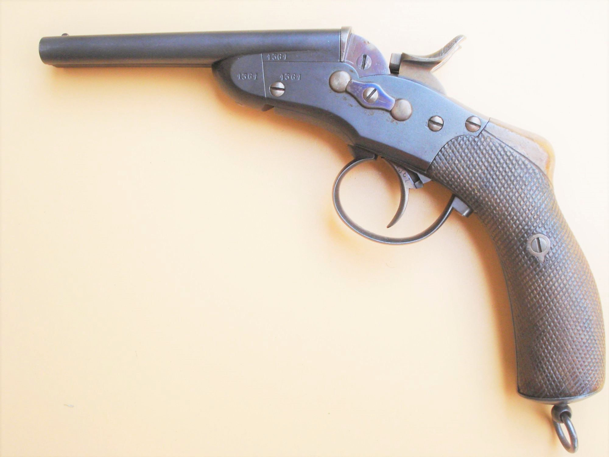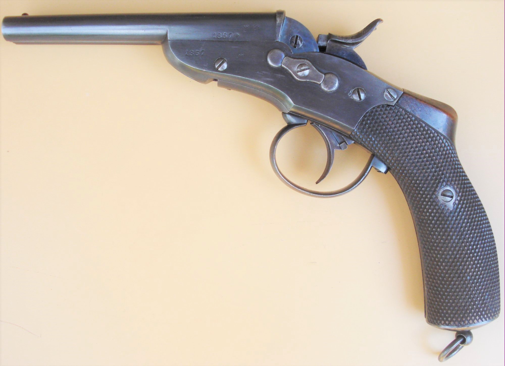 Dit pistool werd vanaf 1877 geproduceerd door de Luikse firma Nagant voor de Belgische rijkswacht ter vervanging van het voorbijgestreefde model 1816/22 pistool voor de rijkswacht, gewijzigd.