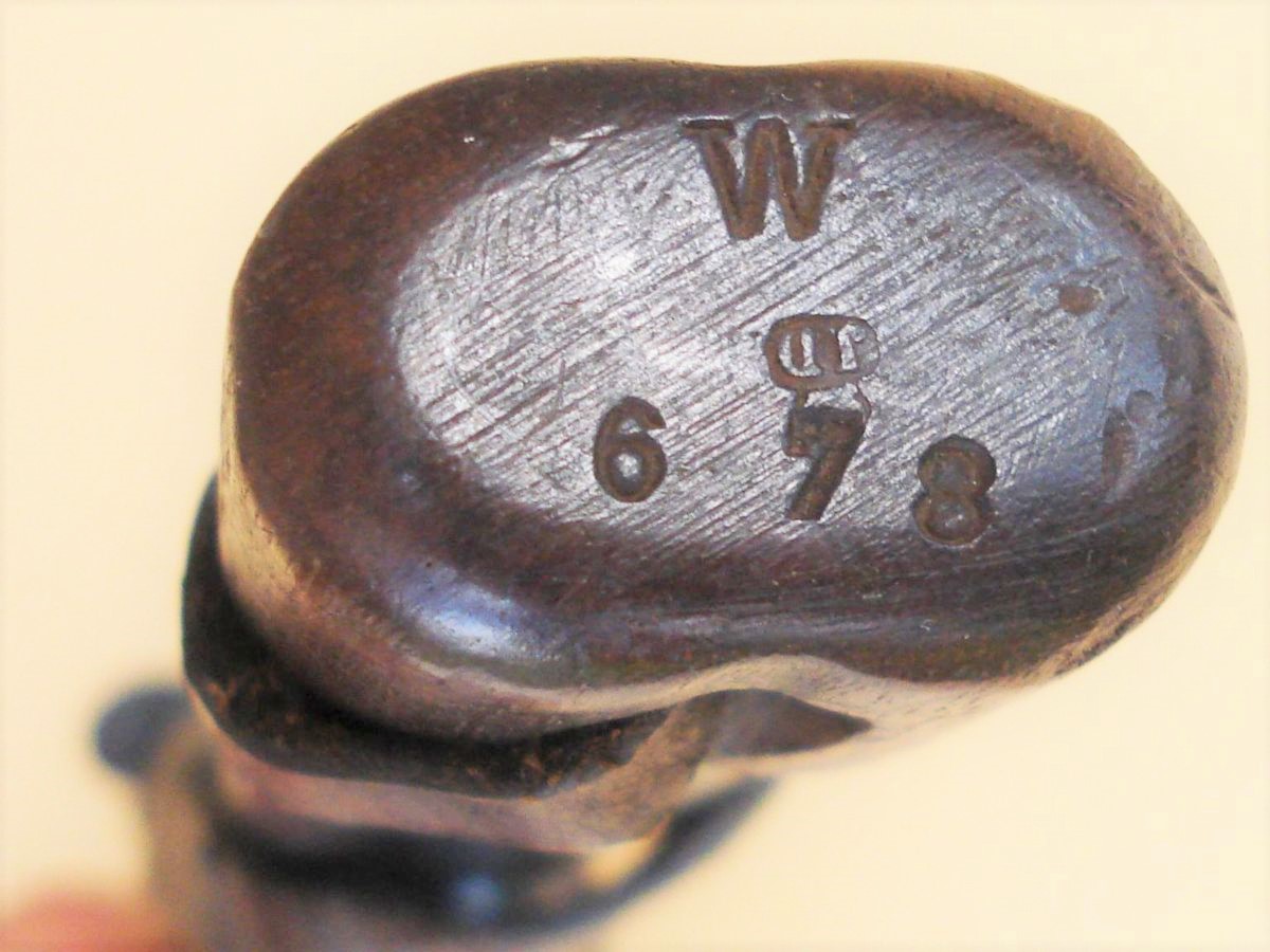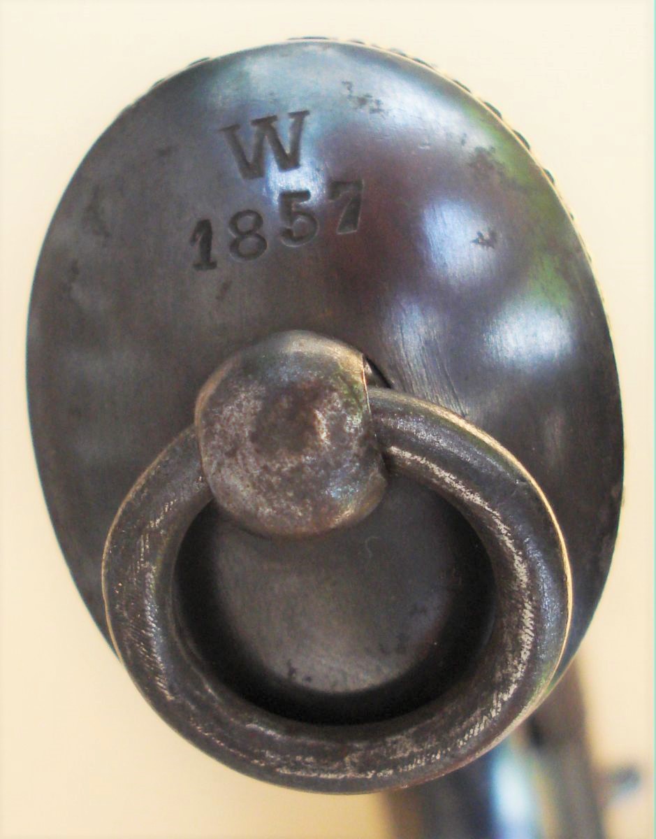 De pistoolgreep had 2 greepplaatjes uit notenhout. De stalen greepkap was voorzien van een stalen ring voor een veiligheidsketting.