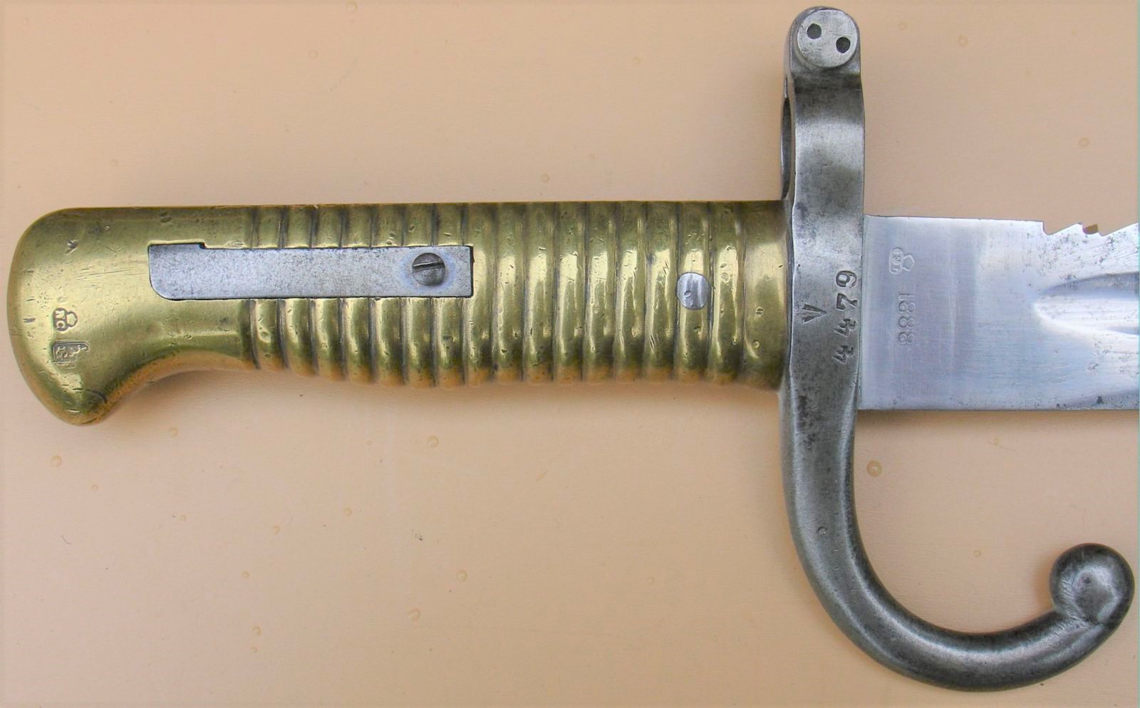 Deze model 1880 yatagan voor de genie was bedoeld voor gebruik op het model 1777/1868 geweer voor de genie (Terssen) ter vervanging van de model 1868 yatagan voor de genie.