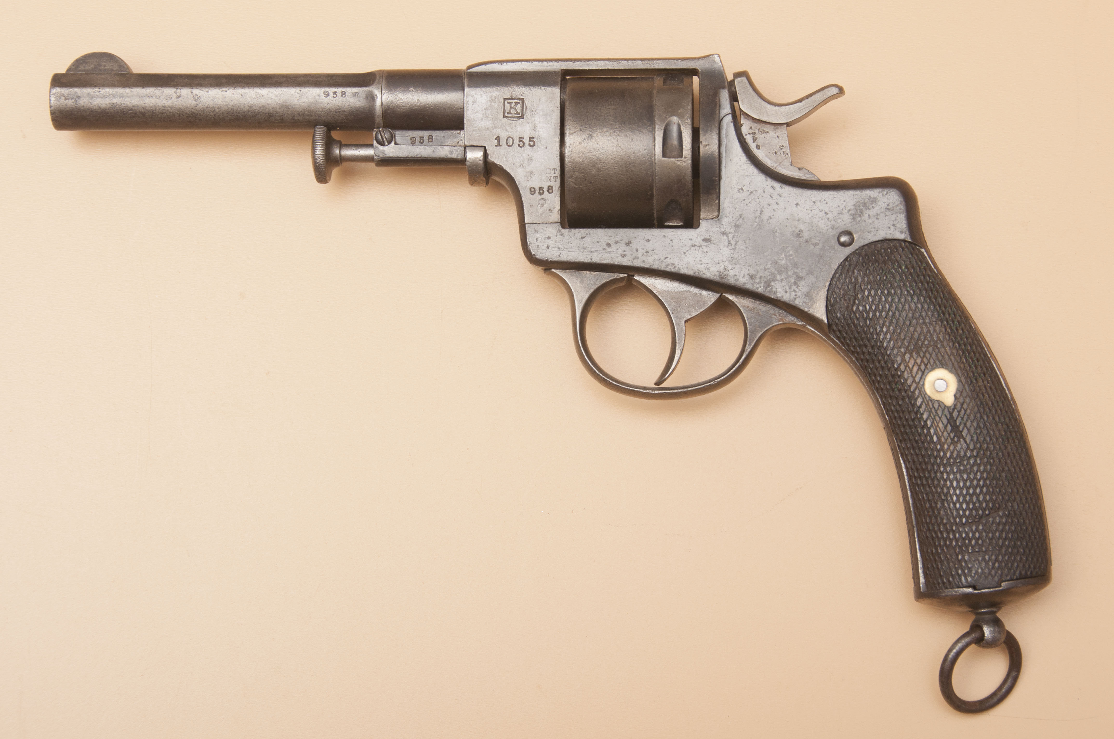 De loop was in 9,4x22mm, een kaliber dat ook wel “9,4mm Nagant” of “9,4mm Bachmann” werd genoemd. De loop had bovenaan 3 vlakken terwijl de onderkant afgeronde was. De niet gecanneleerde trommel had 6 kamers en kon ontladen worden door middel van de ontlaadstok onder de loop.