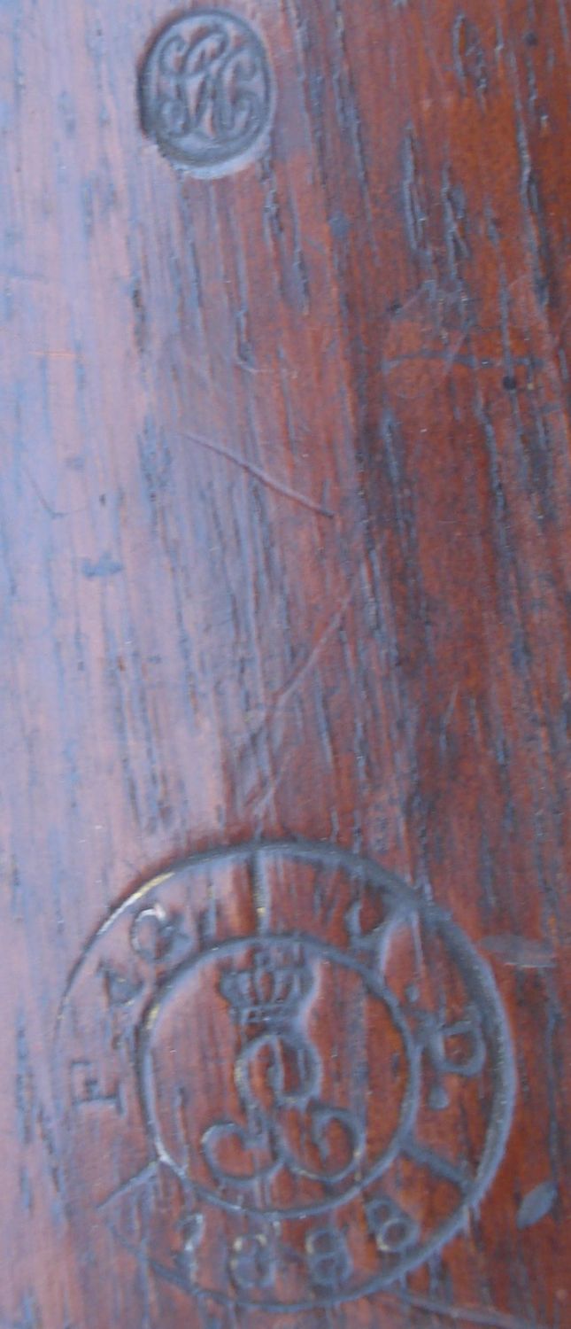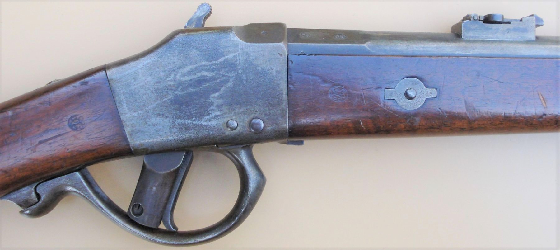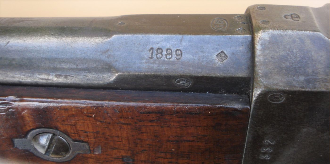 Bij deze karabijn hoorde de model 1888 bajonet voor de boswachters.