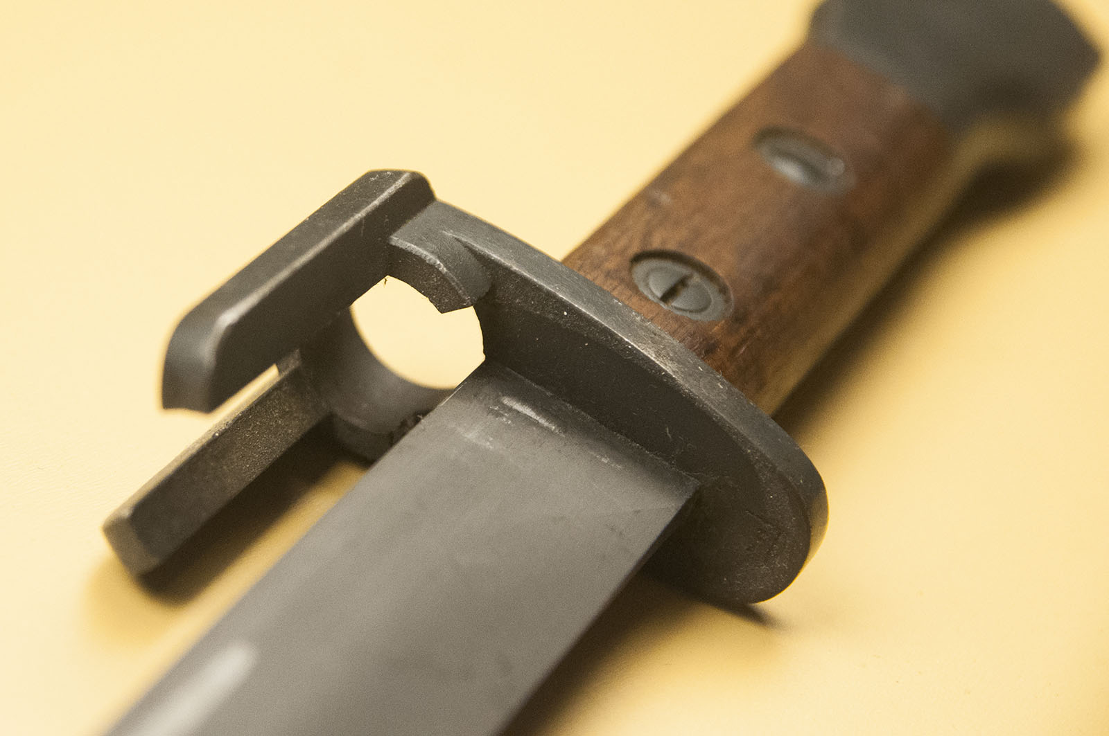 De model A bajonet voor het geweer FN FAL is makkelijk herkenbaar aan de twee vooruitstekende pootjes vooraan de loopring. Deze functioneerden als vlamdemper wanneer de bajonet op de loop geplaatst was. De loop van het FN FAL geweer had zelf geen vlamdemper.