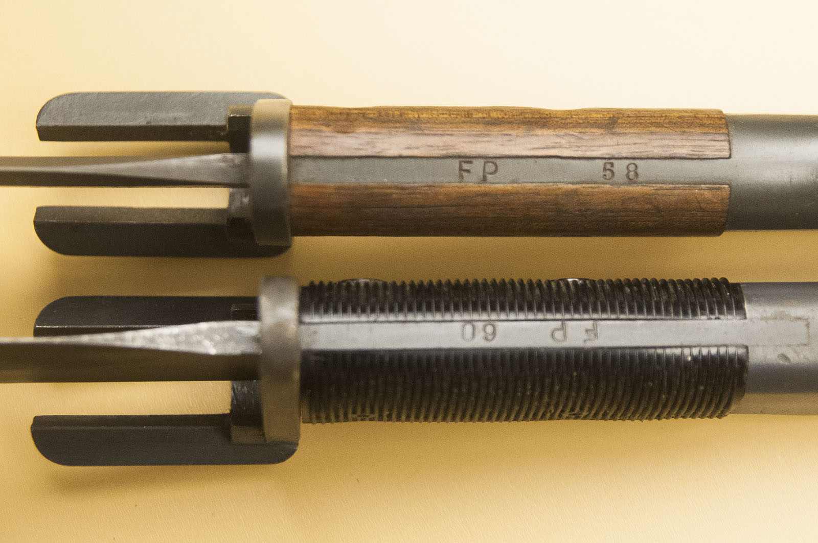 Exemplaren met “FP” op de onderkant van het heft werden gebruikt door de Openbare Weermacht/Force Publique in Congo.
