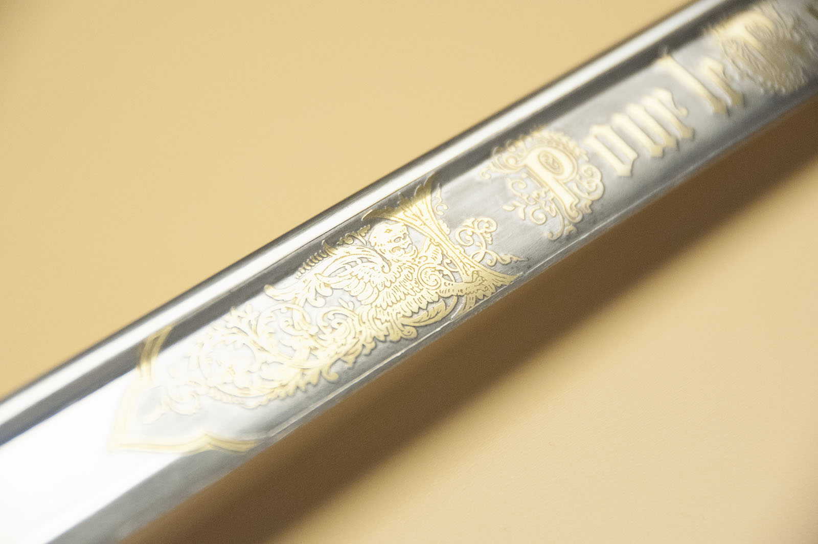 Het lemmet werd op maat van de koper gemaakt, tussen 800 en 900mm, en was recht, enkelzijdig geslepen en zonder bloedgeul. De tang was achteraan de greepkap platgeklopt.